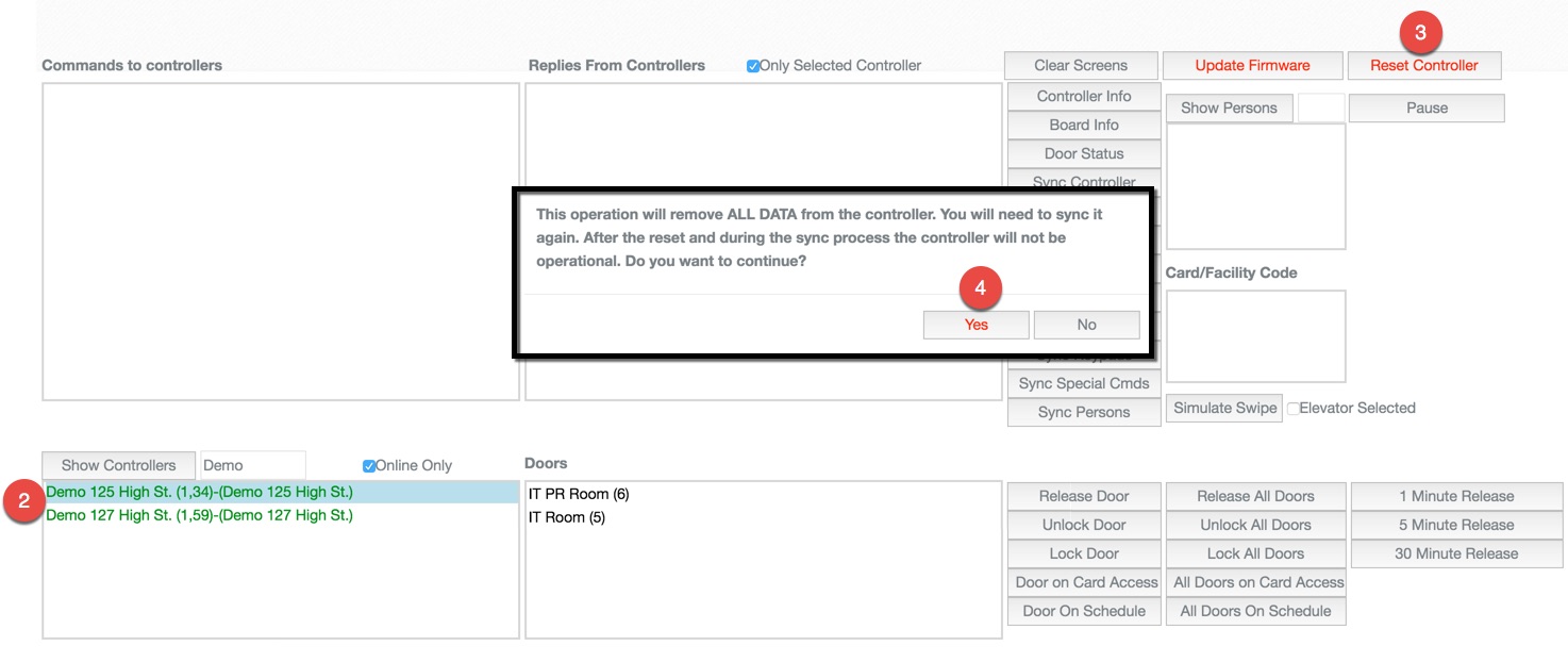 - Verify the correct Controller is selected and that you have the proper authority to reset the Controller at that time, then click yes in the pop up box.