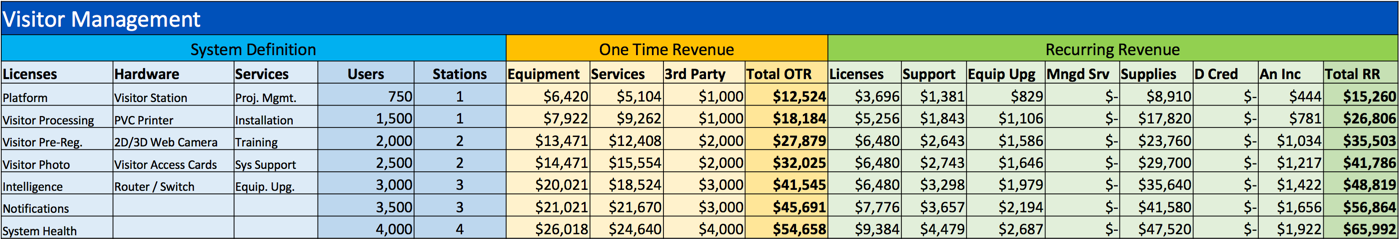 PresentationsPresentation SlidesTypical PSaaS Visitor Management End User PricingTypical PSaaS Visitor Management End User Pricing Generates 45 cents - $2.75 per $1 of installed equip. Average is $1 HaaS/Equip Upgrade is easy to sell Big supplies as a service opportunity Many license opportunities Equipment is 50% of sale Notes
