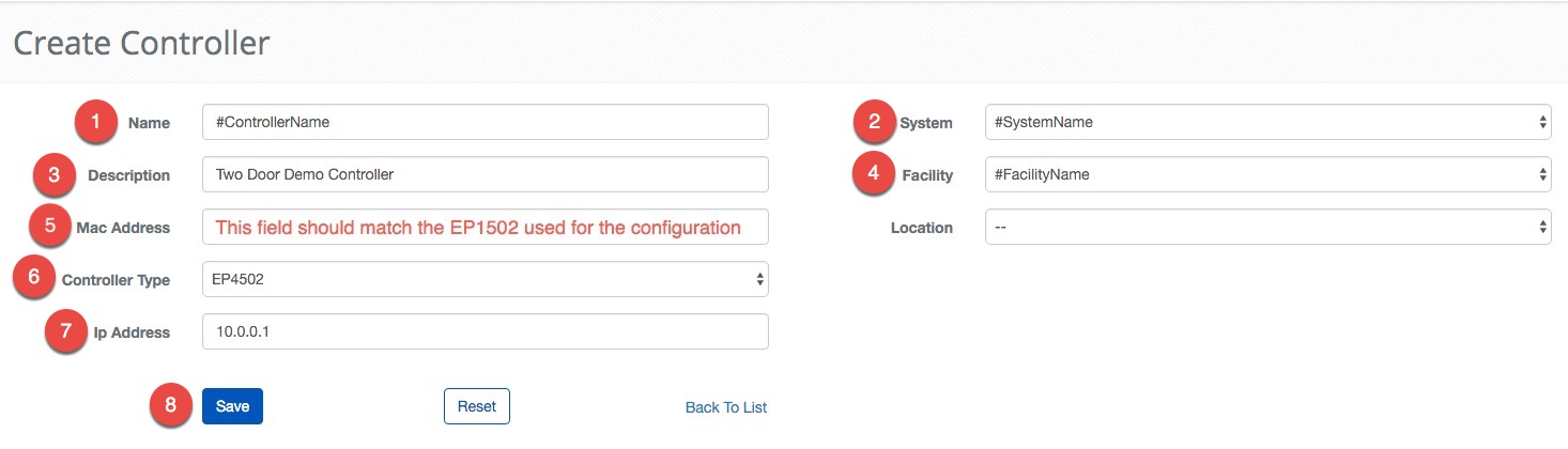 - Enter the MAC Address from an EP1502 in the MAC Address of the Controller.